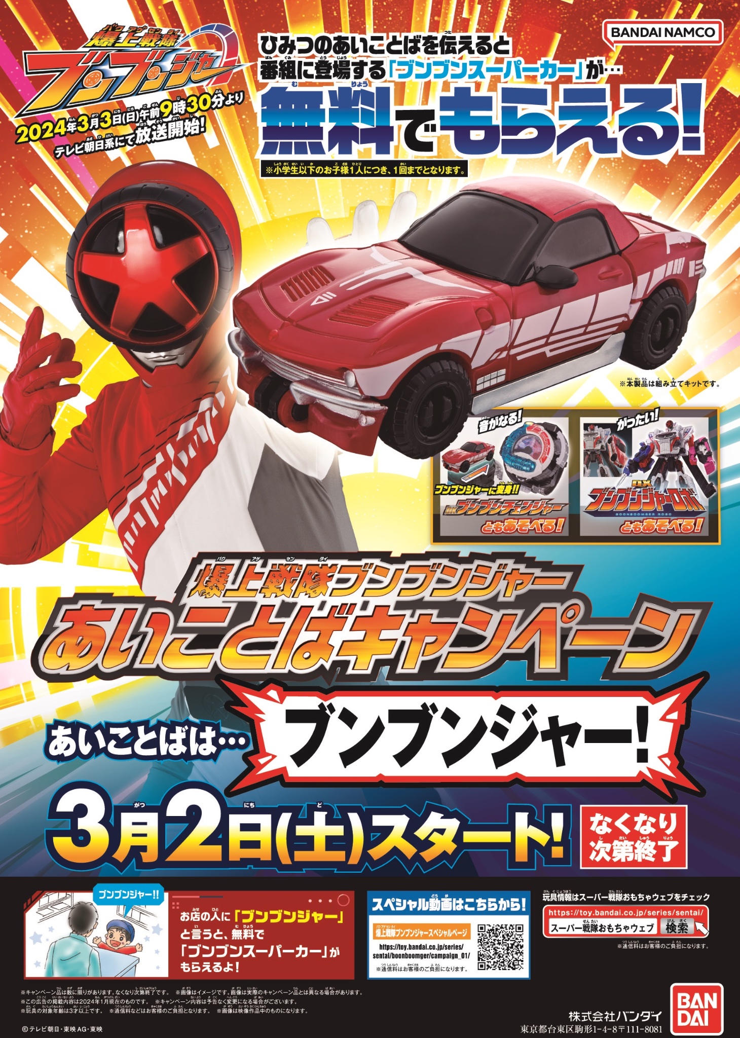 こちらも自動車と子供を結びつける試みに関するニュース。3月3日に新たなスーパー戦隊シリーズ、「爆上(ばくあげ)戦隊ブンブンジャー」が放送開始となった。