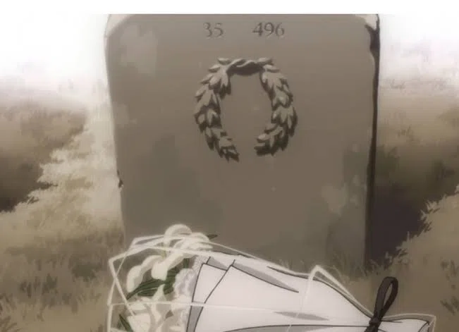 墓標には埋葬者の名前などはなく「35 496」という数字と逆さの月桂冠のみが彫られている。