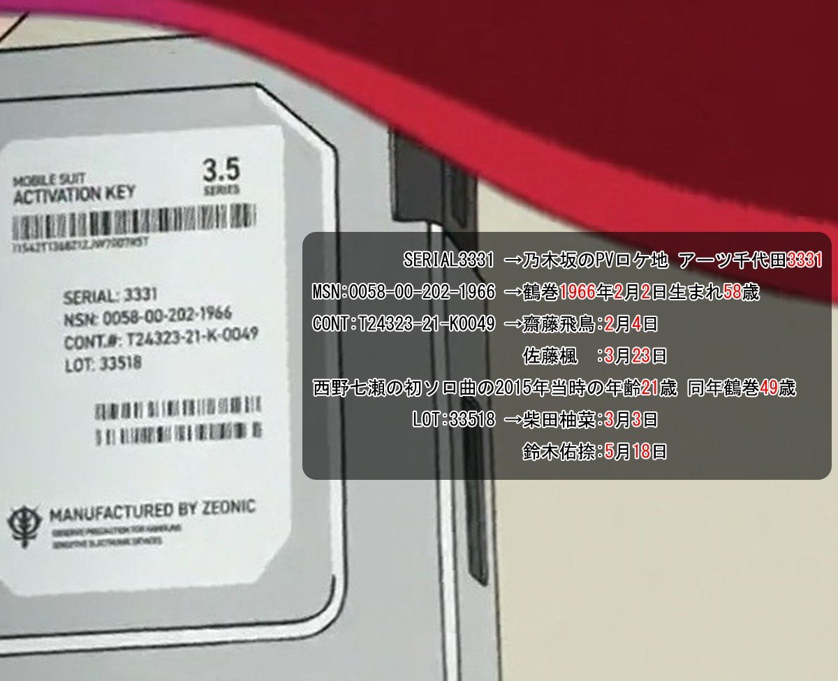 このページは、アニメ「機動戦士Gundam GQuuuuuuX」に登場する、乃木坂46に関連すると思われるシーンや小ネタをまとめたものです。詳細な解説や考察が必要な項目については、個別ページへのリンクを推奨します。なお、本ページの情報には憶測や考察が含まれる場合があります。(*1)