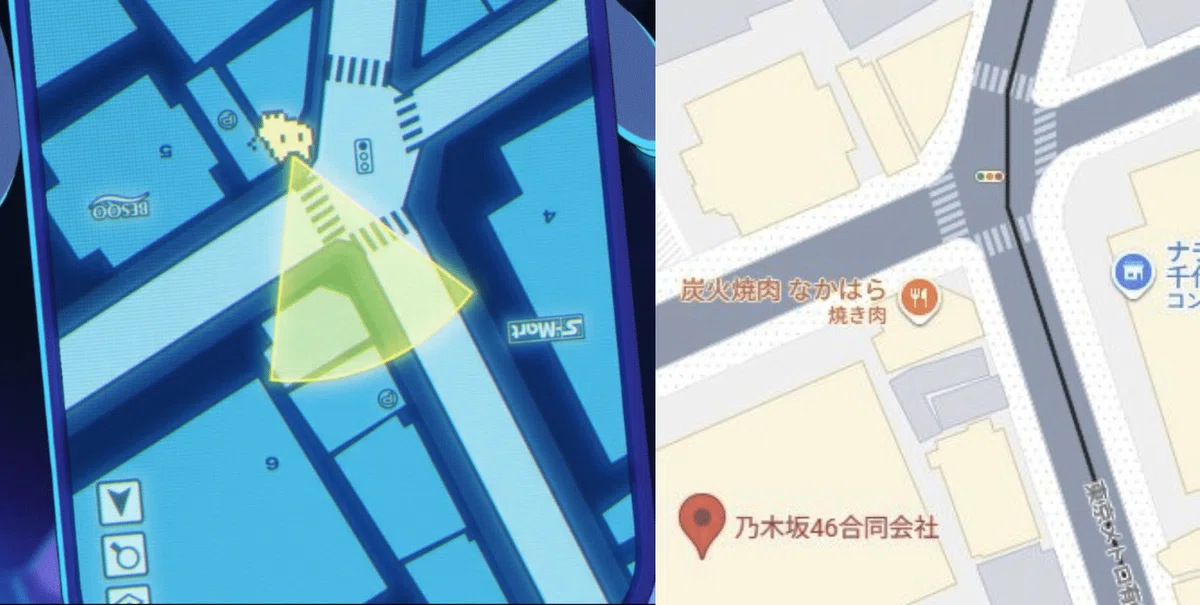 また、地図上の交差点の形状が、乃木坂46合同会社の所在地周辺の交差点と一致する。