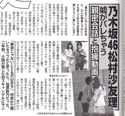 2014年当時に乃木坂46に在籍していた松村沙友理のスクープ記事の写真