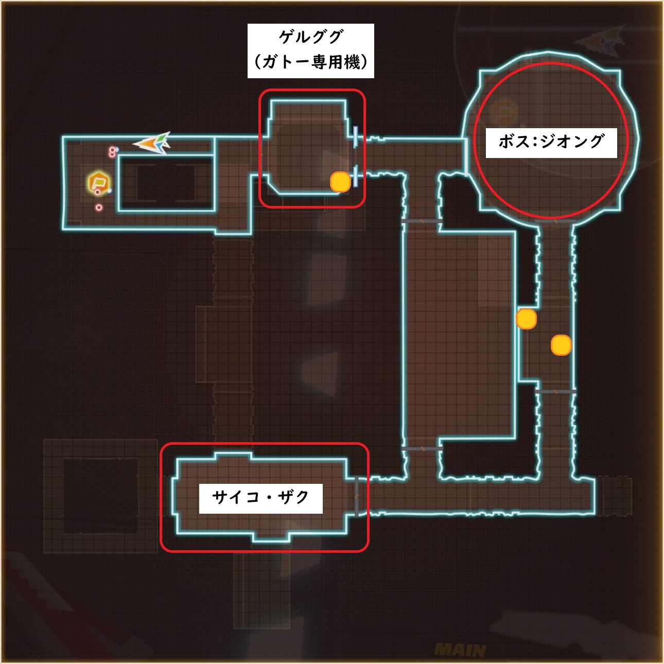 3階・MAP南の横長の部屋に入るとサイコ・ザクがブレイクイン
