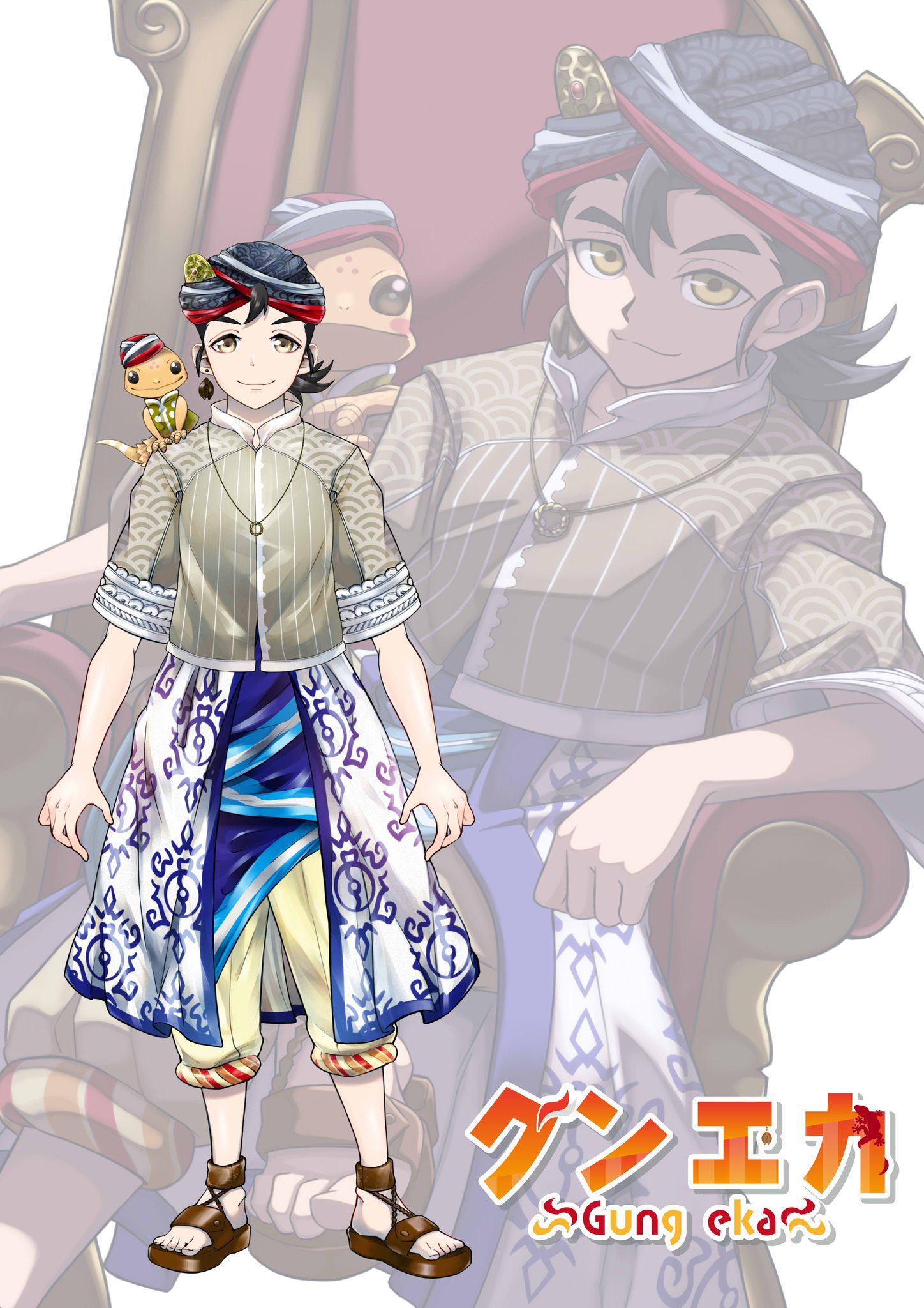 頭にあったウダン(帽子)は腕のバンダナとして巻かれており、腰布は右側のみとなった。