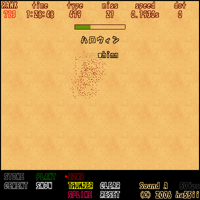 もじゃは、文字を打つとそれが要素となり、下に積もっていくという一風変わったタイピングゲームである。