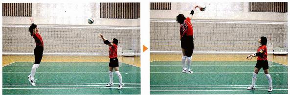 セッターの手にバレーボールが入る瞬間に空中でボールを待っておくこと。