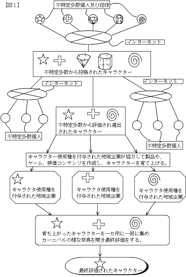 【図1】本発明が目指すネットキャラクター投稿、評価、販売のビジネスモデルの
