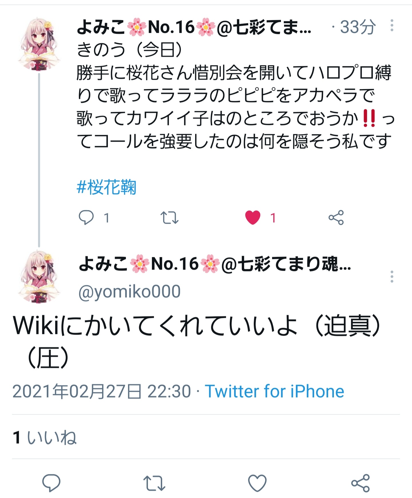 - とても素敵な歌声と、飾らないお話とでとても楽しく配信を追えました!桜花さんに出会えて本当に良かった。配信してくれてありがとう。いつの日かまた会える事を夢見てます。 byロシェ
