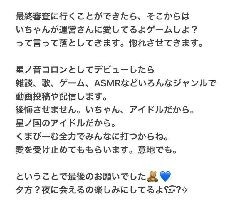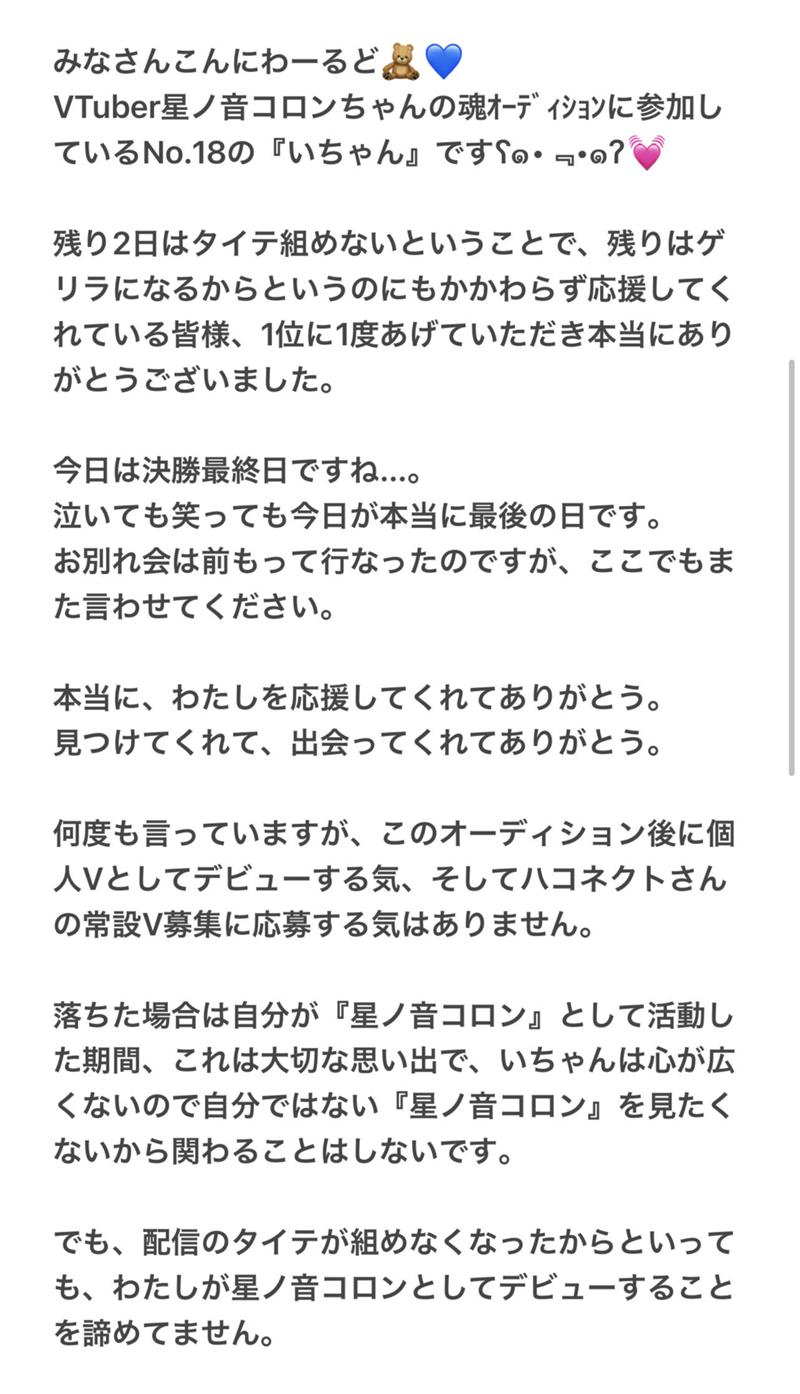 このオーディションで駄目だったら配信活動から手を引く、という不退転の決意にリスナーがギフティングで応え、見事1位に躍り出る