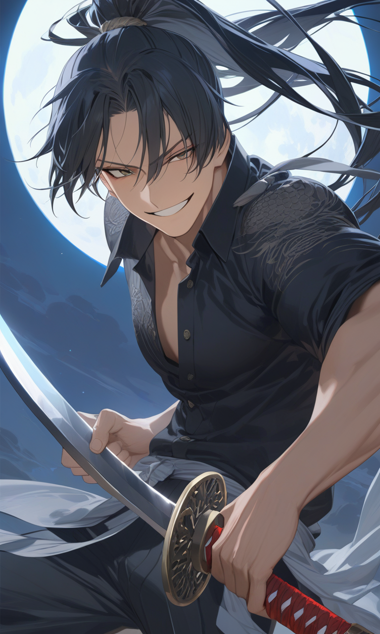 大体いつも黒のシャツと二本の日本刀を腰に差している