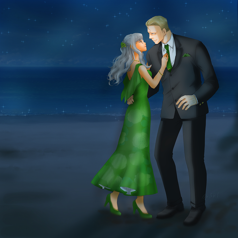 - (改行できないんですねここ)(何度も本当にすみません) 18年の片想いがやっと実った瞬間だったので、本当に本当に嬉しくて、その瞬間をこんな美しいイラストにしていただけたこと、いくら言葉を尽くしても伝えきれないほど感謝しております。 私(というかミサゴさん…)の幸せそうな表情、カールさんの優しい笑顔、腰に回された大きな手、二人の身長差、星空と海の美しさ、すべてが夢のように美しいです……。 というか! カールさん! ネクタイとポケットチーフを私のドレスと同じ色に揃えてくるという芸の細かさ! ホントそういうところですよ! 愛してますありがとうございます……。 長々と申し訳ありませんでした、そして本当にありがとうございました、陽海・ドランジ家の家宝にします! -- ミサゴ・H・ドランジ@レンジャー連邦 (2024-03-02 21:54:58)