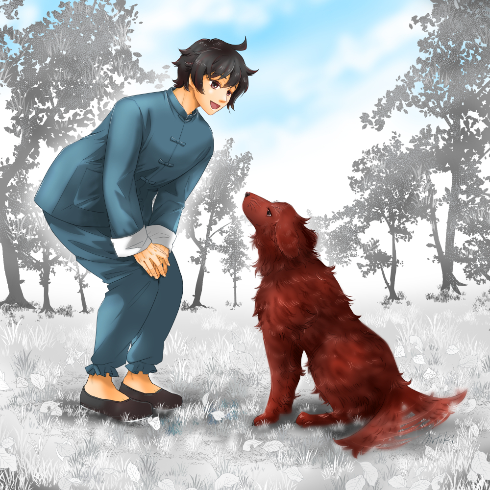 照月さんとルチオラさんの微笑ましいシーンを描かせていただきますのに、アイリッシュセッターの資料を見ながら、おいぬカワイイと思いつつ描かせていただきました。