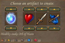 効果の付与順序はアーティファクトの最終ボーナスには影響しないが、必要な資源の量には影響する。いろいろ組み合わせを試してみて、最適な消費資源の組み合わせになるように工夫するとよい。秘宝師スキルの究極レベルでこの作成コストが半分に減少する。