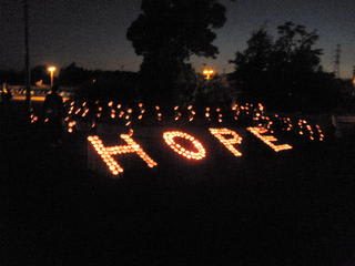 スタジアムに着いたのが6時半くらいだったかな。広場に幻想的な灯りがありました。HOPE=希望。トリニータの勝利を願ってのことだろう。