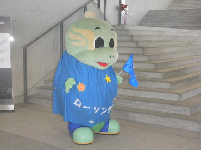今日はローソンデーということで、ローソンの看板みたいな形のマスコットも遊びに来ていた。