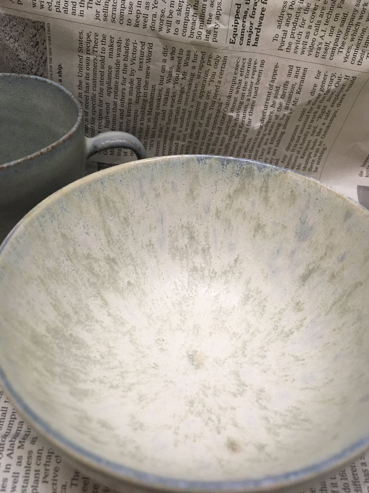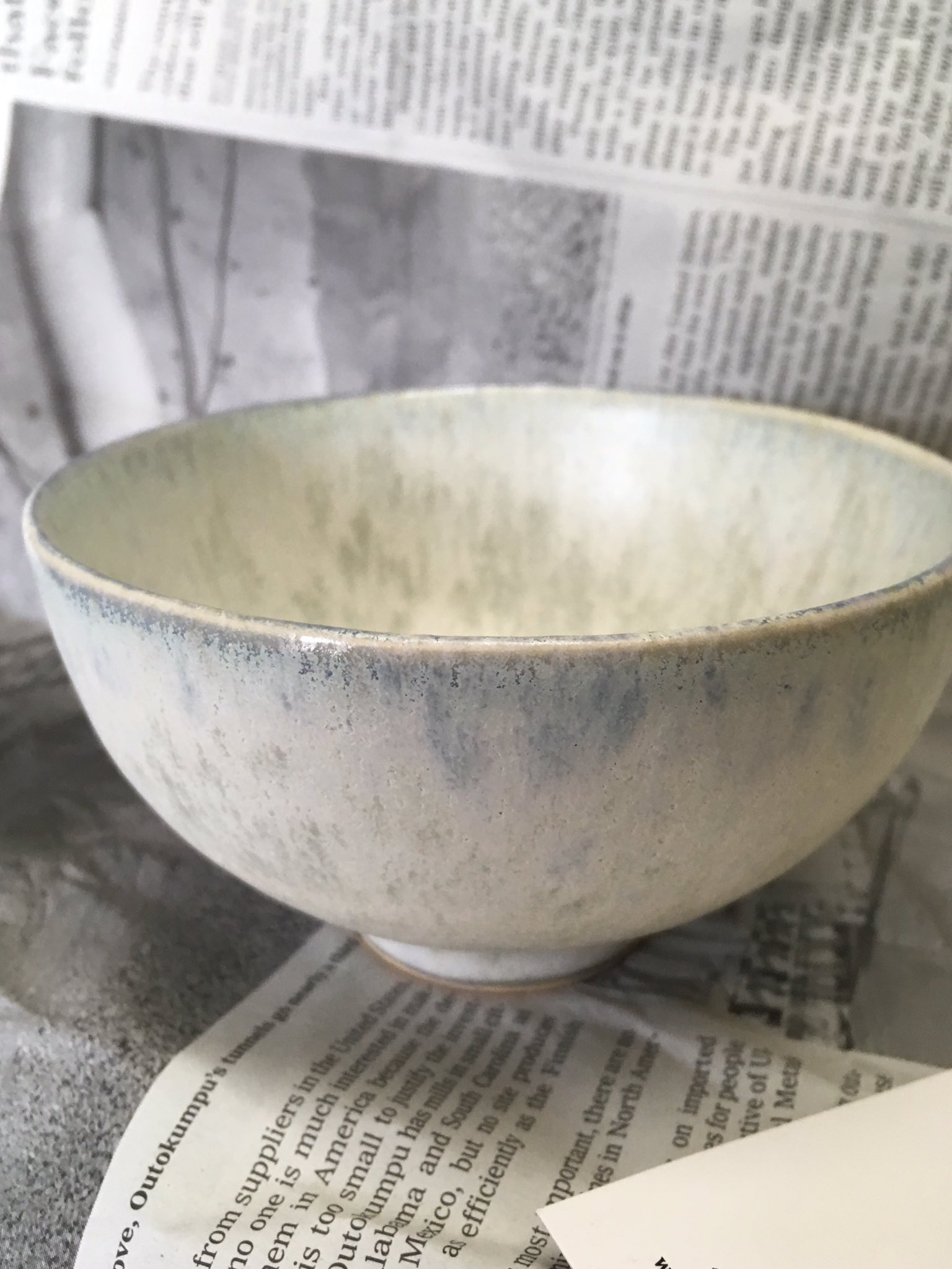 静かな雨の日の夜のような、ネアのイメージのようなマグカップと、雪の日のウィームの朝を思わせる鉢(カフェオレボウルでもお茶碗でもいいそうです)を…