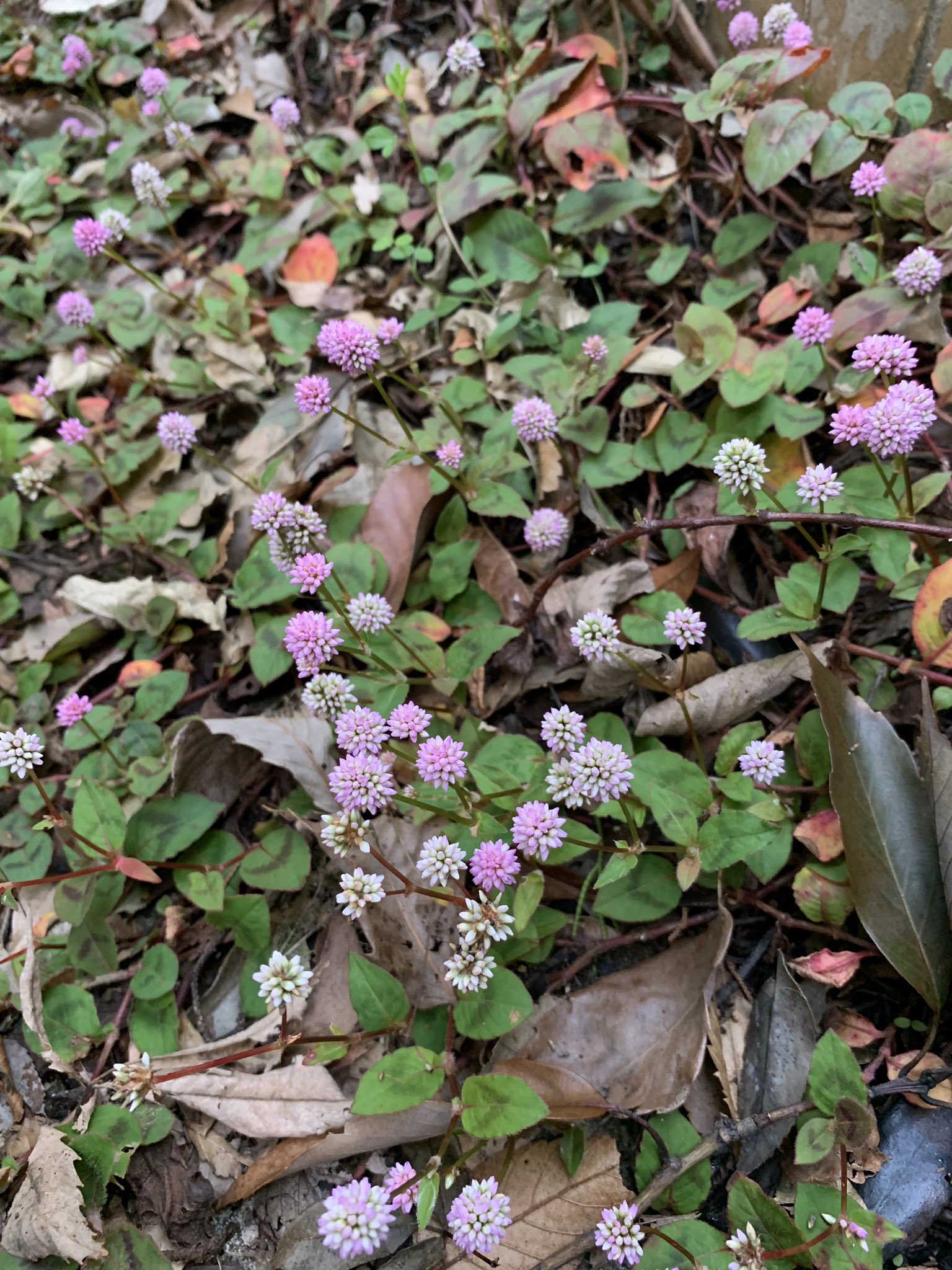 そして、食べ物の写真ばかりになっていますので、晩秋の庭の様子を。金平糖のようなピンクの下草は、いつの間にか庭に現れていました。