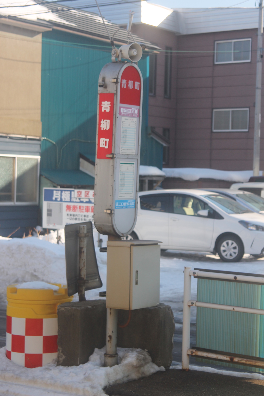 最寄りのバス停は函館バス9系統、53系統が停まる青柳町である。