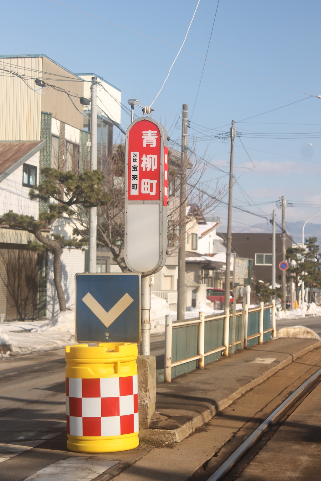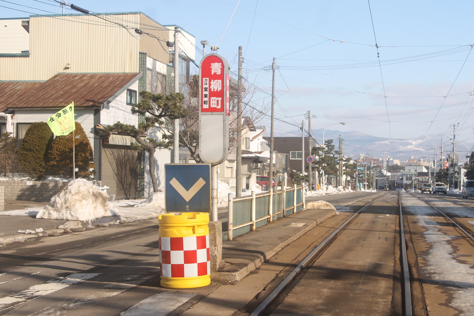 函館市青柳町にある電停である。駅ナンバリングはY25である。