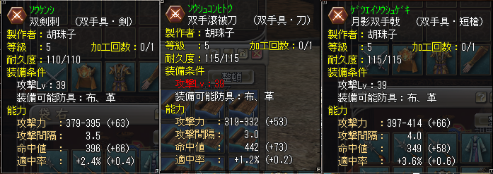 | 攻撃武器(双手具)3種類(剣・刀・短槍) |