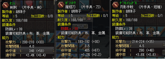 | 防御武器(片手具)3種類(剣・刀・短槍) |
