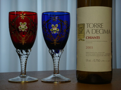 俺はねーワインあげたよー。キャンティとバローロ!俺んとこの最高級の白と赤をペアグラスと一緒に包みましたー
