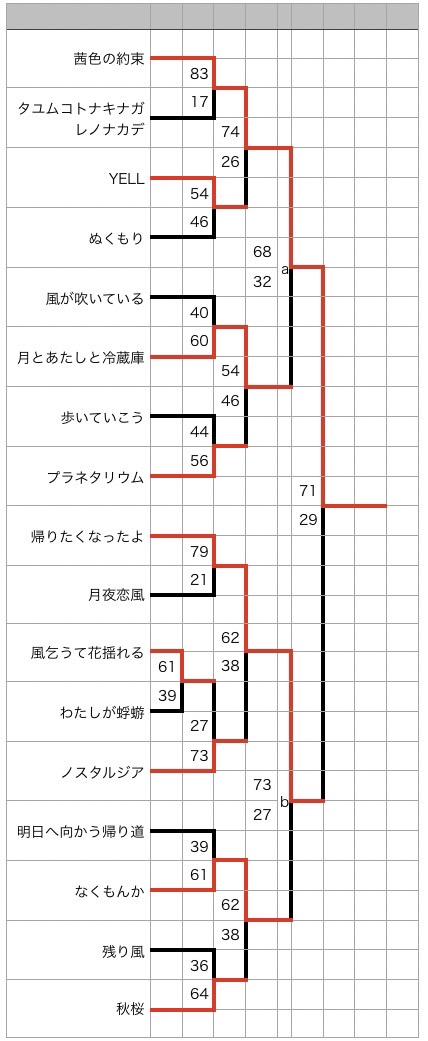 5位以下の曲は完全ランダムでトーナメントに組み込みました。