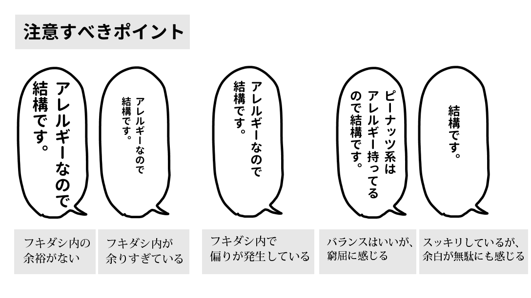 基本的に フキダシ内にある程度の余裕があったほうが 見やすい。