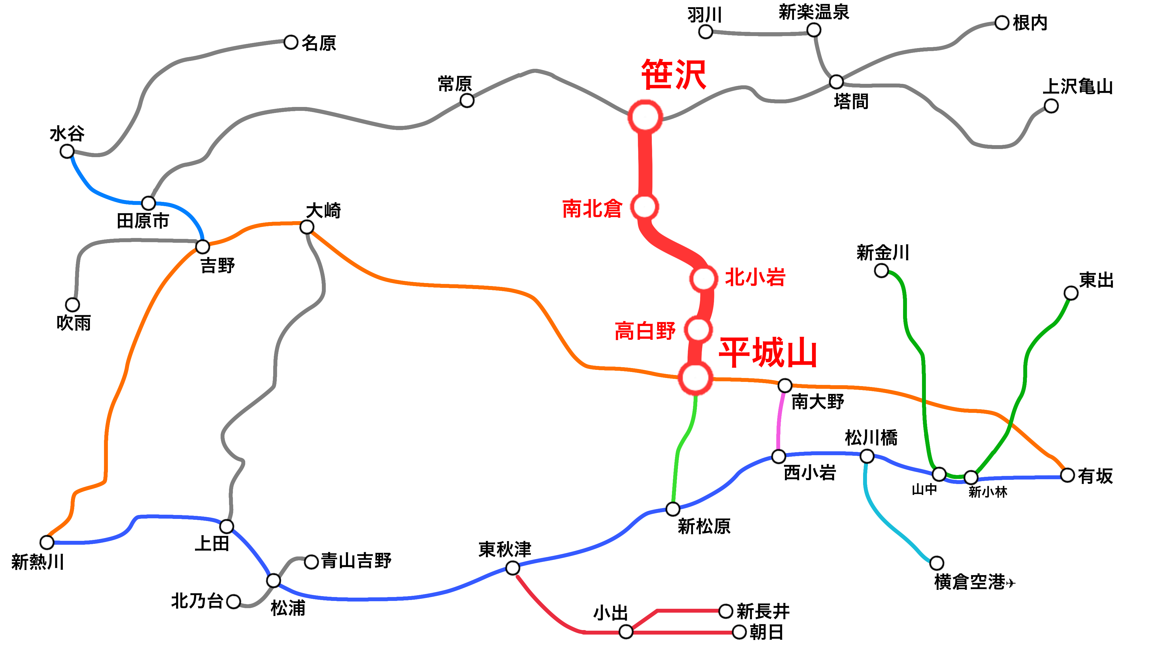 この路線は中央線、松代線の平城山駅から北倉線の笹沢駅までを結ぶ路線。