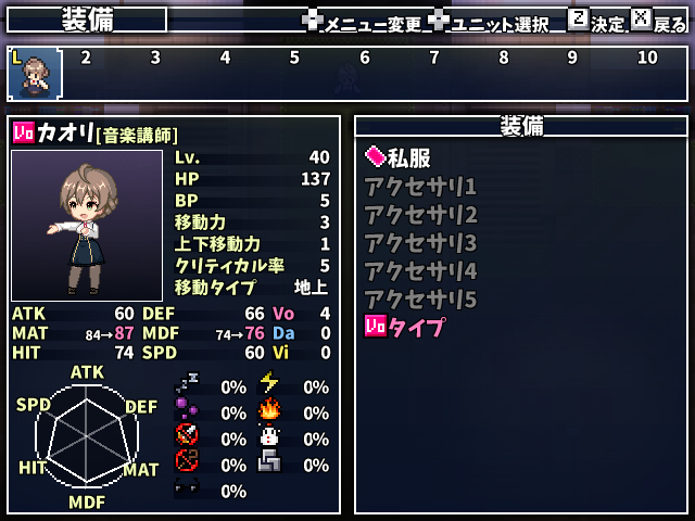 固有アビリティ | 発声練習: 隣接する味方ユニットの歌魔法の威力と命中率+25% |