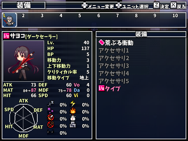 狂乱 | 5BP | 特殊範囲[物理/魔法] | 物理&魔法攻撃[ATK105%+MAT105%] | |
