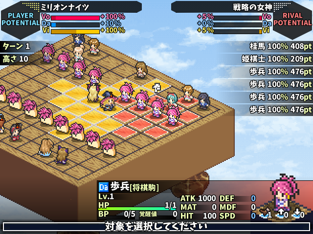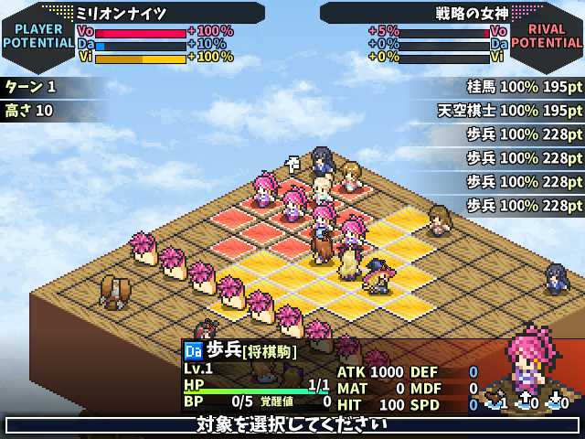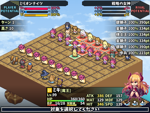 1)ミキを移動、敵ミヤが中心位置になるように「魔光テンプテーション」を使って、敵ミヤ以外を倒す。