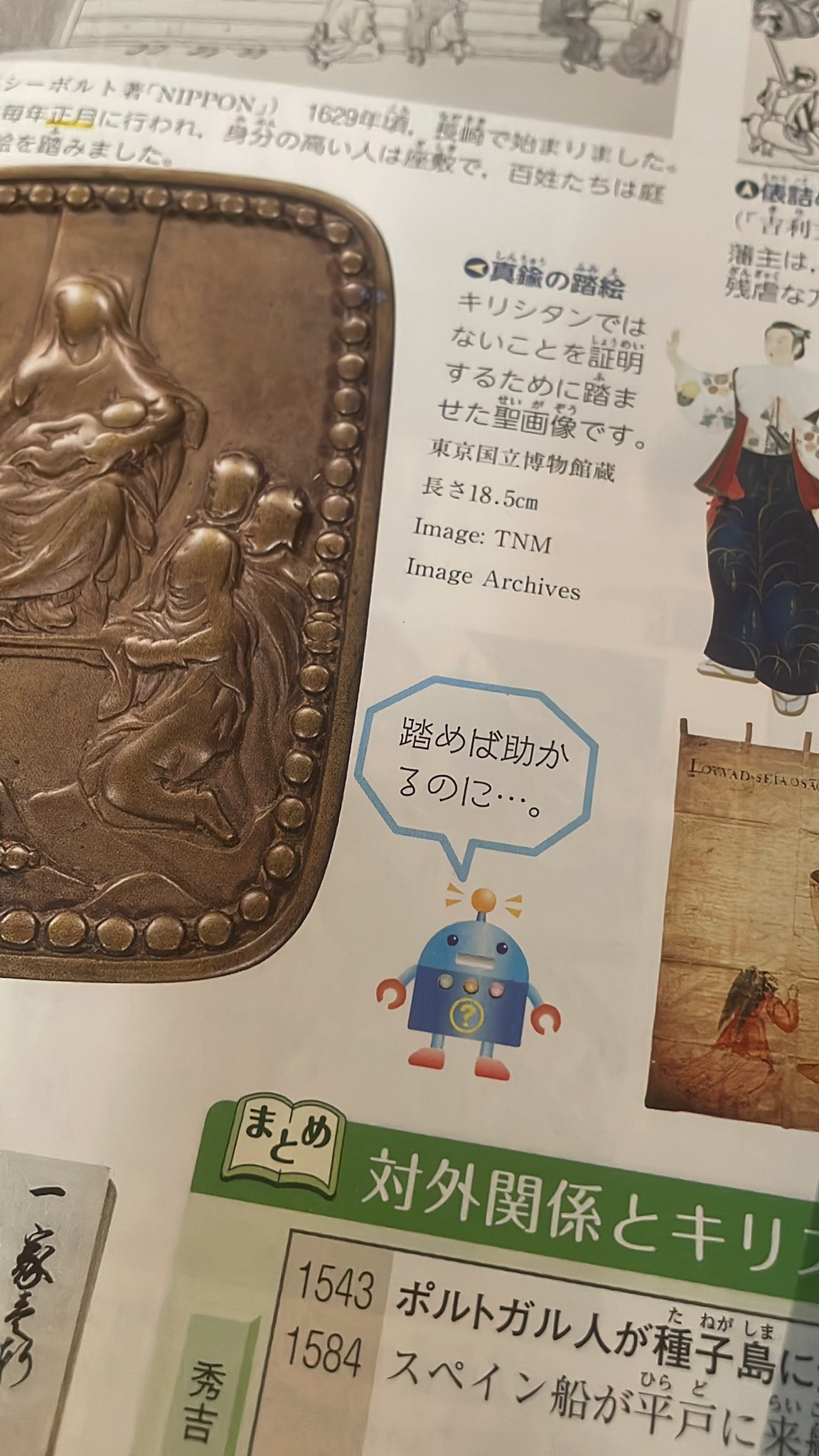 江戸時代のキリシタンをあぶりだすために使われた踏み絵に対して"踏めば助かるのに…。"という無神経すぎる発言からブームになった。