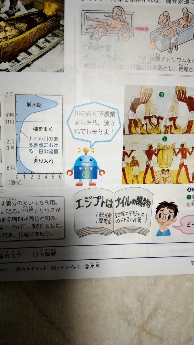 浜島書店より出版の中学歴史資料集「学び考える歴史」に登場するロボットの台詞。