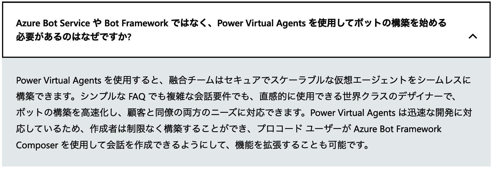 ざっと見ただけだと、結局PowerVirtualAgentsを使用した場合とあまり変わらないように見える。