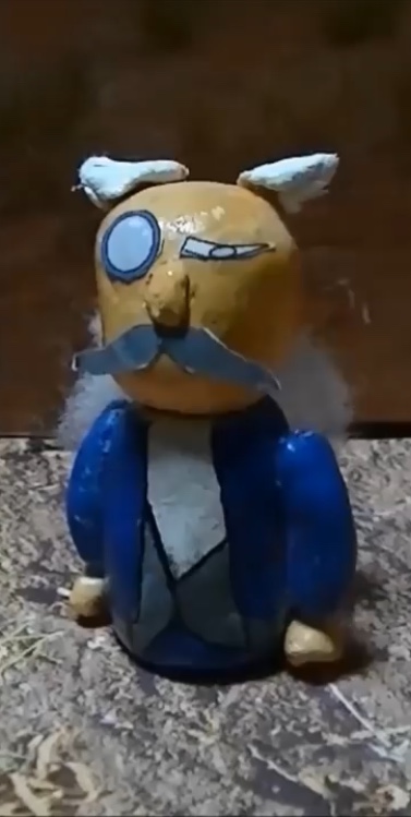 外見はモノクルと青いスーツ、白い口髭と背中に着いている綿が特徴の老人の人形。