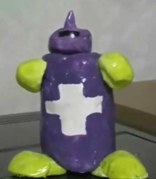頭に一本の角と体に十字架のマークを付けた甲冑を着た大柄な人形。