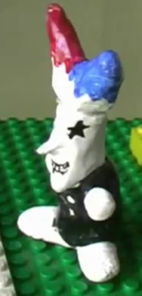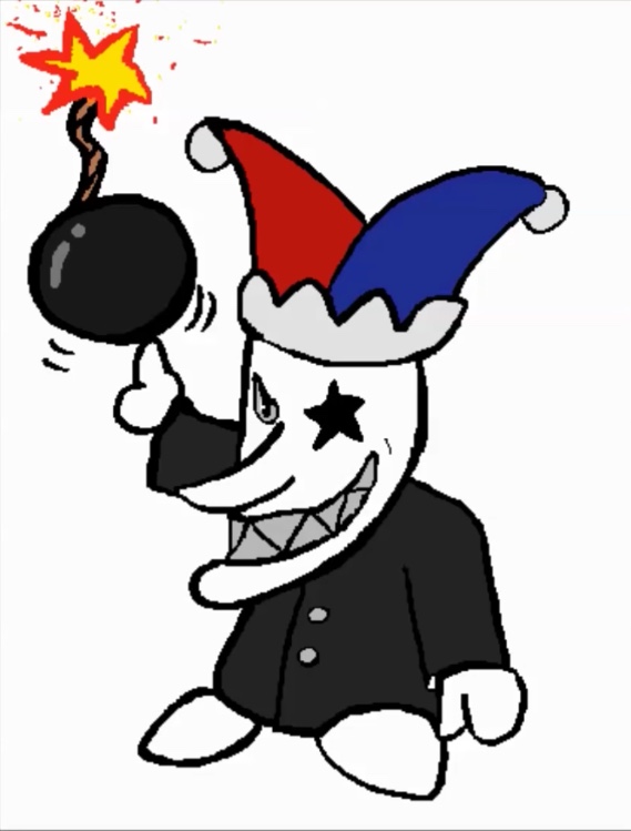外見は青と赤の帽子を頭にかぶっており、白い肌と左目の星型のマークが特徴の道化師の人形。
