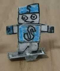 概要:頭と手足のS極と『S』とプリントされた青いTシャツが特徴。