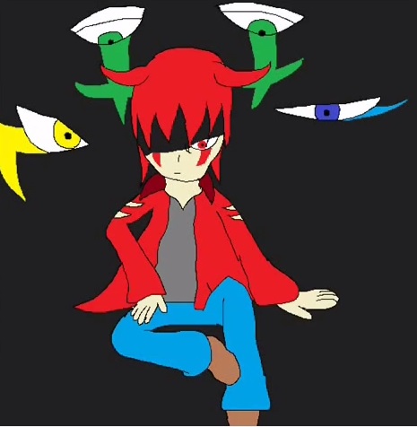外見は赤髪に赤い角、目元に刻まれた赤い刺青が特徴的な炎のような模様が描かれたコートを着用した男。