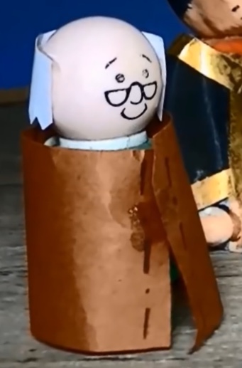 外見は禿頭と眼鏡が特徴で茶色のローブを纏った老年の人形。