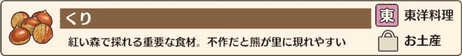 紅い森で採れる重要な食材。不作だと熊が里に現れやすい