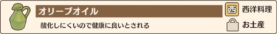 オリーブオイル 西洋料理 需要E 調理工程7 加工不可 菜食OK オリーブの実 秋に需要増 西097 お土産