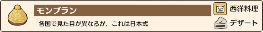 料理カテゴリ | 西洋料理 | 提供カテゴリ | デザート | 図鑑番号 |