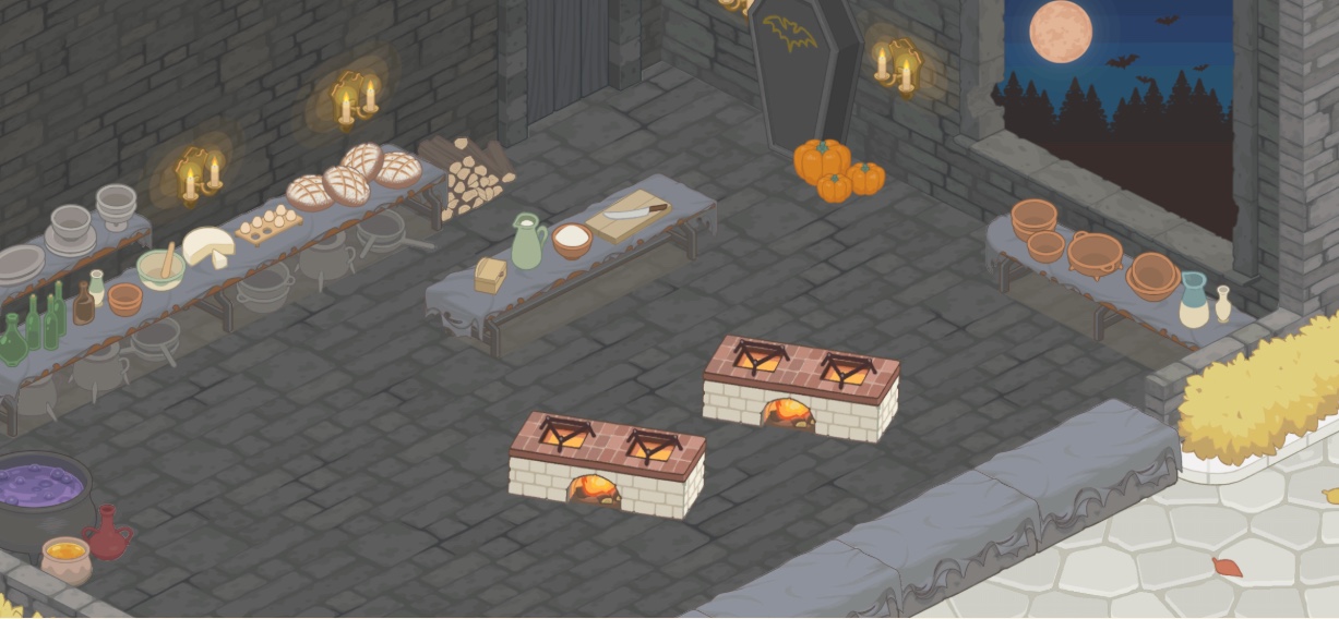 全てを設置すると画像のようなハロウィンの古城風な店舗に内装変更可能です!