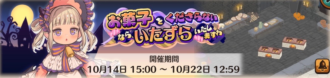 2025/10/14よりチャレンジイベント「お菓子をくださらないなら、いたずらいたしますわ」が始まりました。