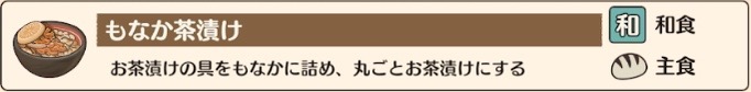 | 元になる料理 | もなか | しじみのしぐれ煮 | 鮭茶漬け | |
