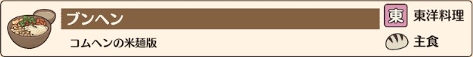 | 料理カテゴリ | 東洋料理 | 提供カテゴリ | 主食 | 図鑑番号 |
