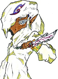 人狼、あるいは狼人(ミヴロ)と呼ばれる狗人種族が好んで使う武器。チニ・ウェテルとも呼ばれる。おおよそ1~1.5mの長さのミスリル製の片刃剣であり、表面にルーン文字が彫り込まれている。切断、斬撃を最重要視して作られている。 |