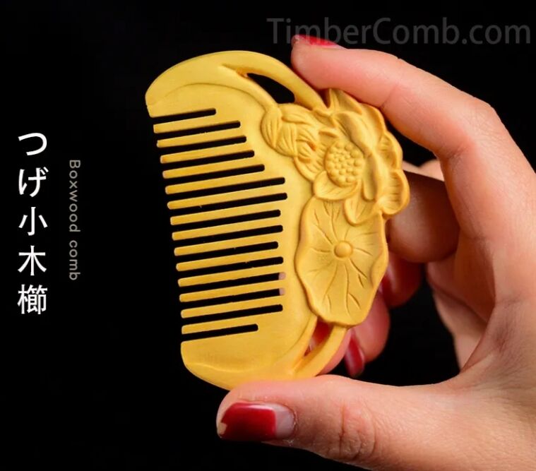 小葉つげ櫛材製 彫刻工芸デザイン 携帯用細歯クシ ヘアスムーシング バッグ用ギフトセット
