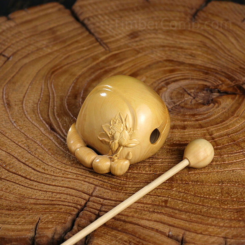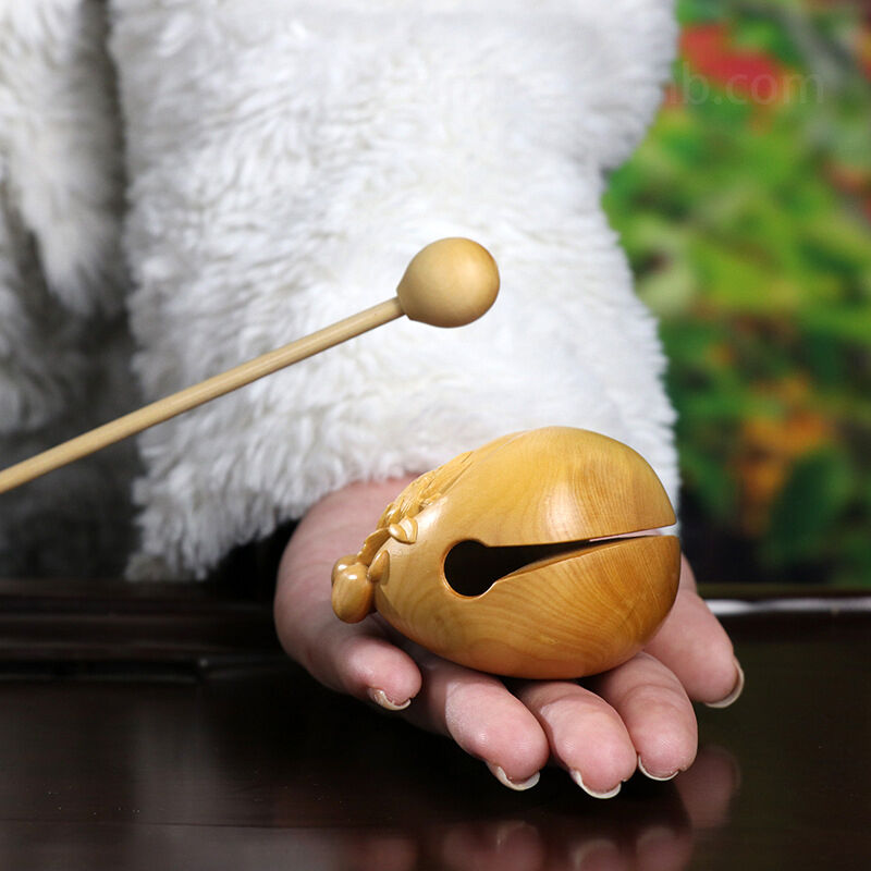 木槌で軽く叩くと、つげならではの温かみがありながらも澄み切った、心落ち着く優しい音が響きます。この音は雑念を払い、集中力を高め、深いリラックスへと導いてくれるでしょう。忙しい日常の中で、(木彫り風水)ほんの数十秒だけ自分と向き合う「マインドフルネス」の習慣として最適な打楽器です。